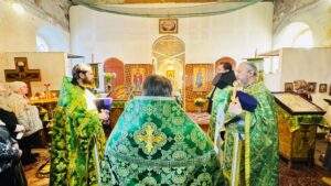 В этот день, по благословению Высокопреосвященнейшего Каллистрата, архиепископа Бежецкого и Удомельского, Божественную литургию в храме преподобных Зосимы и Савватия Соловецких д. Слобода совершил благочинный Краснохолмского округа иерей Михаил Иванов. Ему сослужили: настоятель Троицкого храма г. Красный Холм протоиерей Олег Филиппов, настоятель Казанского храма п. Сандово иерей Андрей Швецов и настоятель Свято-Николаевского архиерейского подворья иеромонах Арсений (Салов).